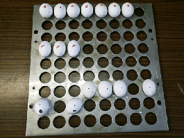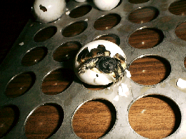 Im Brutkasten liegen die Eier auf einem Lochblech.